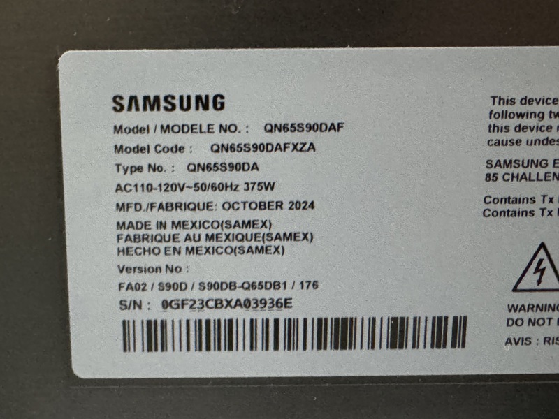 Qty 1 unit for $425 - Samsung QN65S90 TV